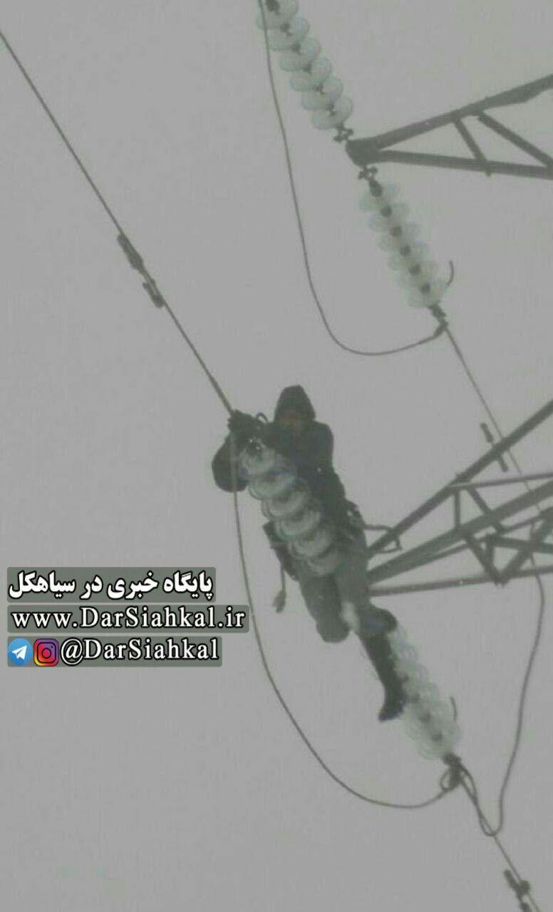 در این عکس تلاش مأموران تعمیر خطوط برق فشارقوی در بخش دیلمان را مشاهده می کنید.