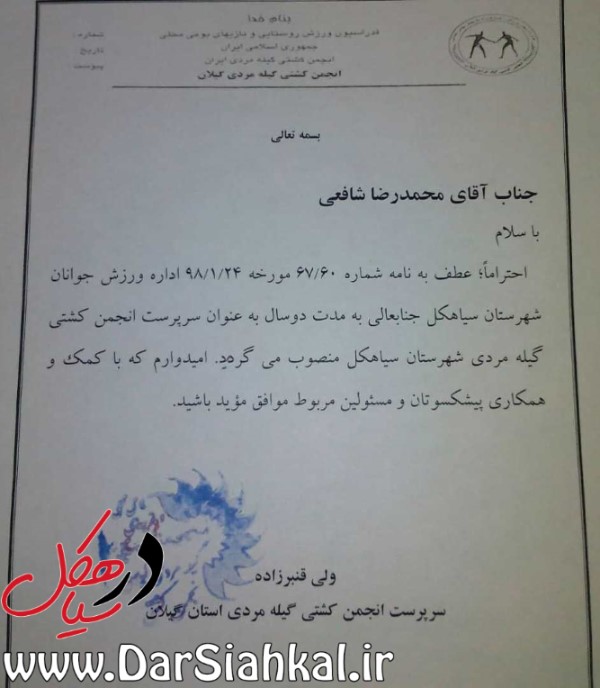 شافعی سرپرست کشتی گیله مردی شهرستان سیاهکل شد+حکم