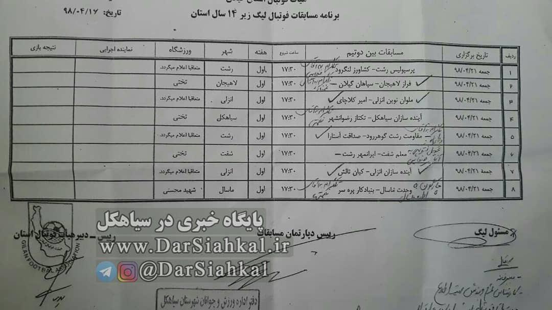 با اعلام هیئت فوتبال گیلان، لیگ برتر فوتبال نونهالان زیر چهارده سال از تاریخ ۹۸/۴/۲۰ آغاز می‌شود.