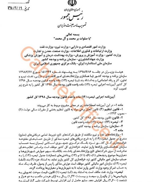 با مصوبه هیئت دولت: