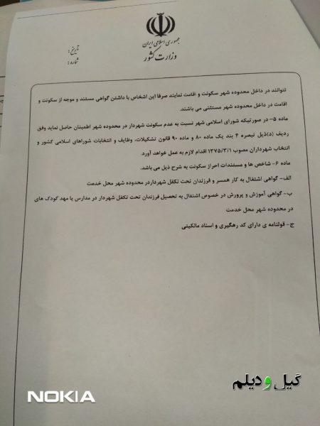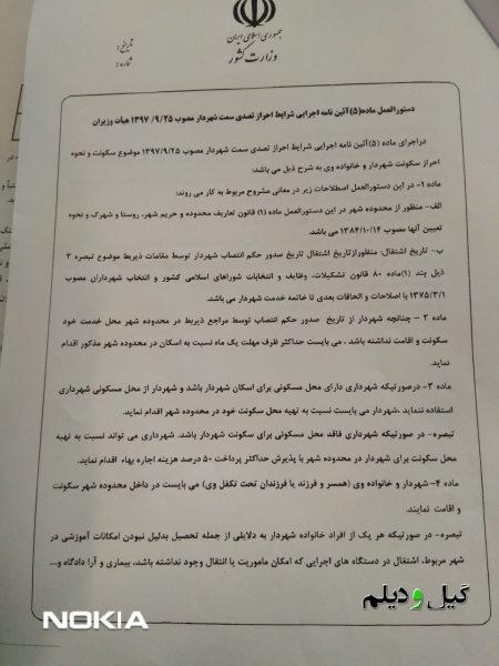 شهردار اشاره به دستورالعمل ماده ۵ آییننامه اجرایی شرایط احراز تصدی سمت شهردار مصوب ۹۷/۹/۲۵ هیئتوزیران،میکنه و از طرفی هم میگه فرزند خردسالم …. اینجور استنباط میشه که مهدکودک مورد نظر ایشان در شهر سیاهکل در شأن و منزلت ایشان نیست..
