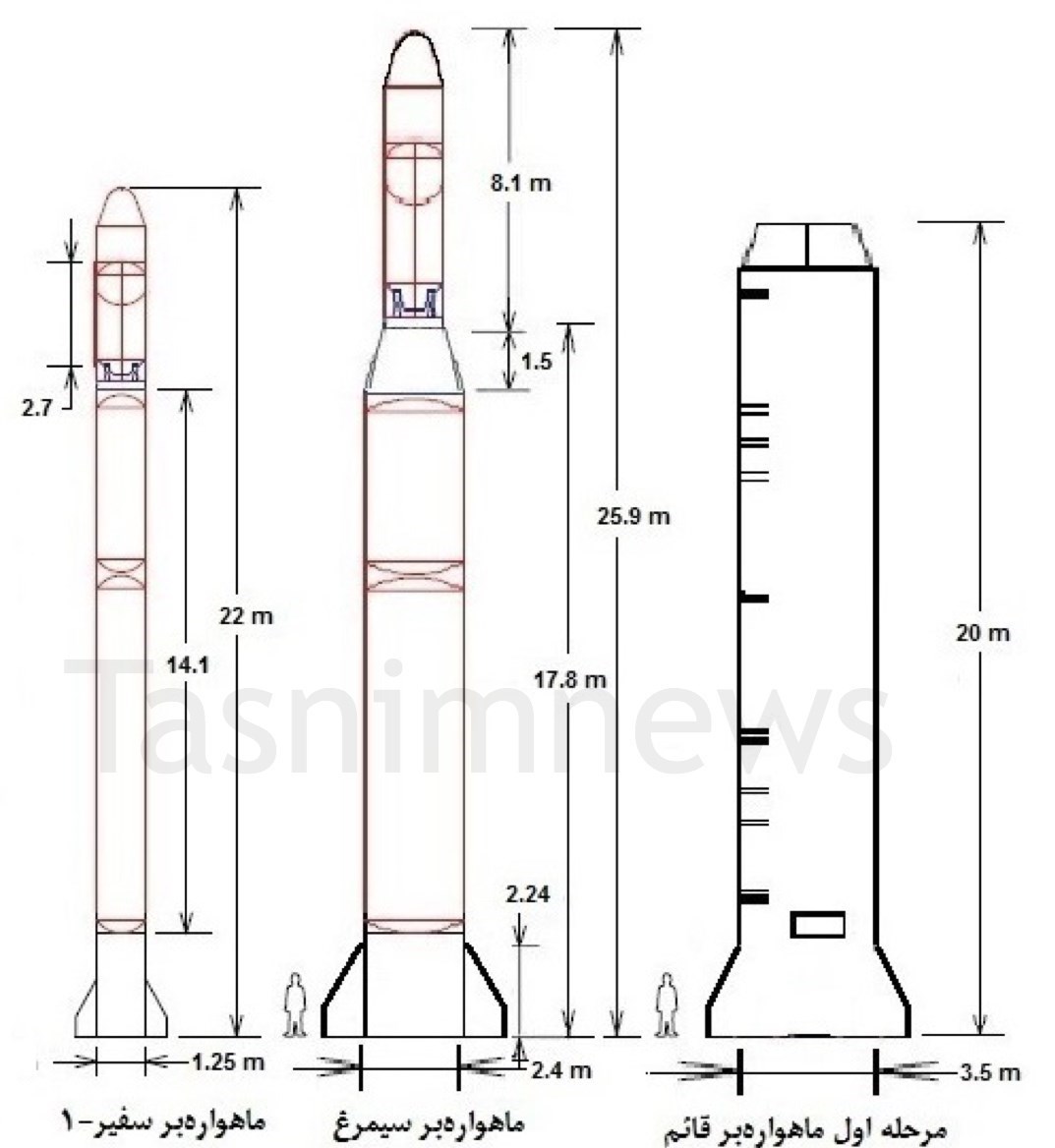 مقایسه ابعاد مرحله اول قائم با سیمرغ و سفیر