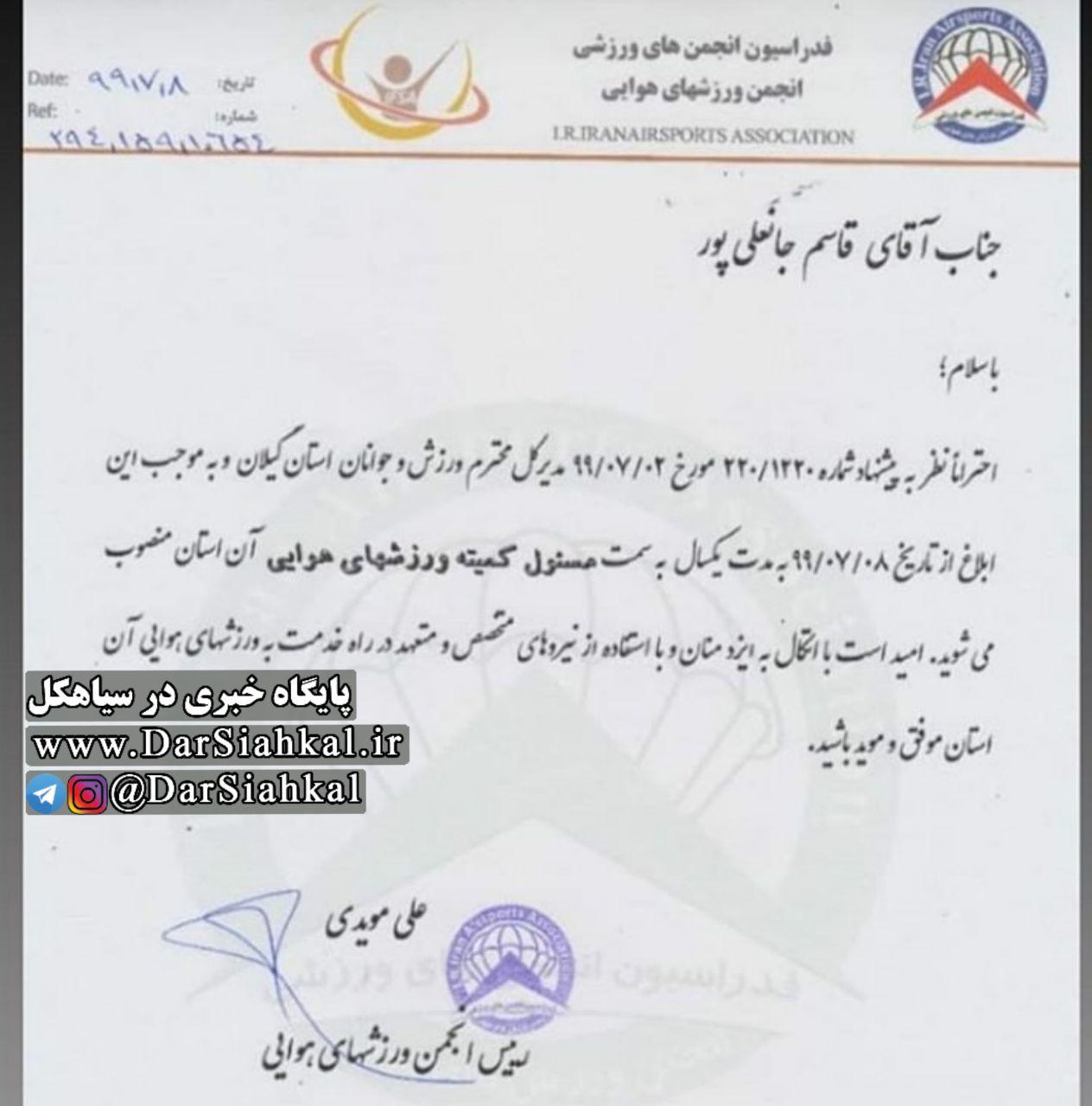 فرمانده سیاهکلی نیروی انتظامی لاهیجان؛ مسئول کمیته ورزش‌های هوایی گیلان شد + حکم