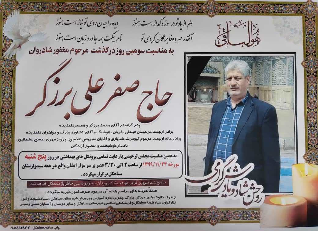 «صفرعلی برزگر» جانباز 50 درصد هشت سال دفاع مقدس شهرستان سیاهکل ساعاتی پیش بر اثر سکته دعوت حق را لبیک گفت و به کاروان شهدا پیوست.