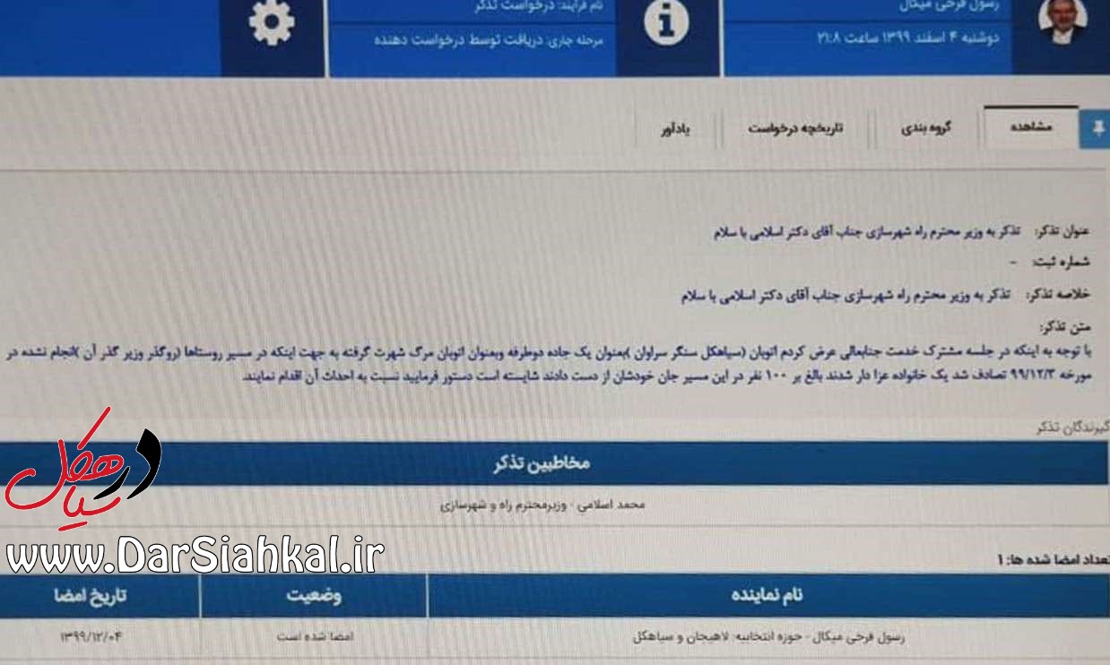 با سلام و احترام با تشکر از نماینده محبوب ما جناب آقای دکتر فرخی ان شاءالله تلاشی شما سیاهکل را به جایگاه اصلی خود در گیلان برساند. (( اسماعیل قاسمیان))