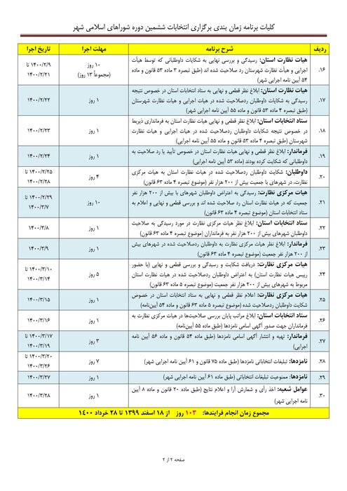 انتخابات 1400 برنامه زمانبندی انتخاباتانتخابات 1400 برنامه زمانبندی انتخابات 1400