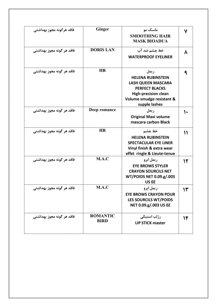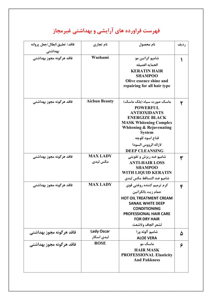 اسامی چهارده قلم محصول آرایشی و بهداشتی غیرمجاز