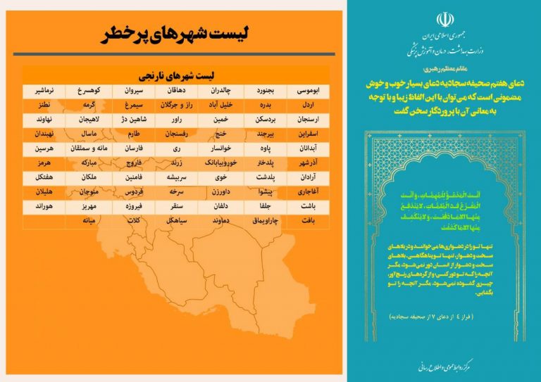 بر اساس اعلام مرکز روابط عمومی و اطلاع رسانی وزارت بهداشت، تعداد شهرهای با وضعیت قرمز در کشور از ۳۶ به ۳۴ کاهش و تعداد شهرهای با وضعیت نارنجی از ۵۹ به ۶۹ شهر افزایش یافته است.