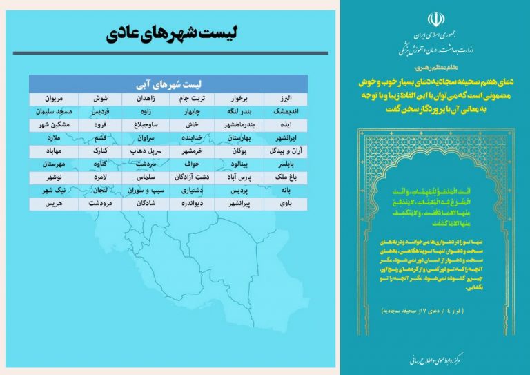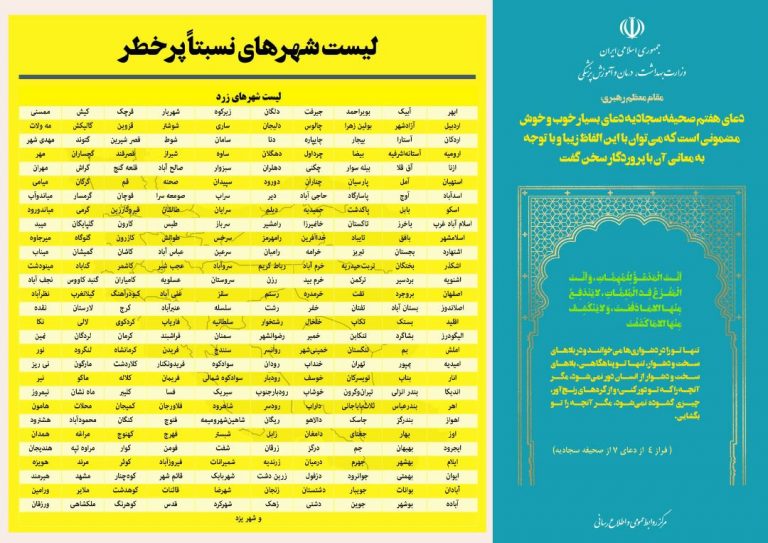 همچنین تعداد شهرهای با وضعیت زرد از ۲۹۵ به ۲۹۱ شهر و تعداد شهرهای با وضعیت آبی از ۵۸ به ۵۴ شهر کاهش یافت.