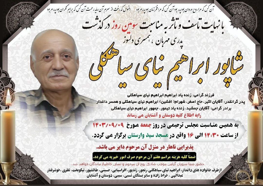 مرحوم شاپور ابراهیم نیای سیاهکلی پس از تحمل یک دوره بیماری، در بیمارستان پیروز لاهیجان درگذشت.
