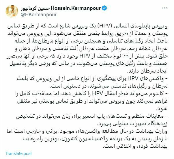 بیماری hpvحسین کرمانپورزگیل تناسلیواکسن گارداسیلوزارت بهداشت
