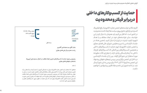 در بخش پایانی گزارش چهارم کیفیت اینترنت ایران آمده است که کیمیسون اینترنت انجمن تجارت الکترونیک با توجه به مشکلات متعدد پیش آمده برای کسب‌وکارهای اینترنتی کشور در مسدودسازی‌های ناگهانی دامنه‌های‌شان در بررسی‌های متعدد با مشاوران حقوقی به سند پیش‌نویس برای مطالبه‌گری از کارگروه مصادیق محتوای مجرمانه‌ی کشور رسیده است. در این پیش‌نویس از این کارگروه درخواست شده که در چند بخش درباره‌ی مسدودسازی آی‌پی‌ها یا دامنه‌های اینترنتی شفافیت داشته باشند و نسبت به سکوهای اینترنتی پاسخگو باشند.
