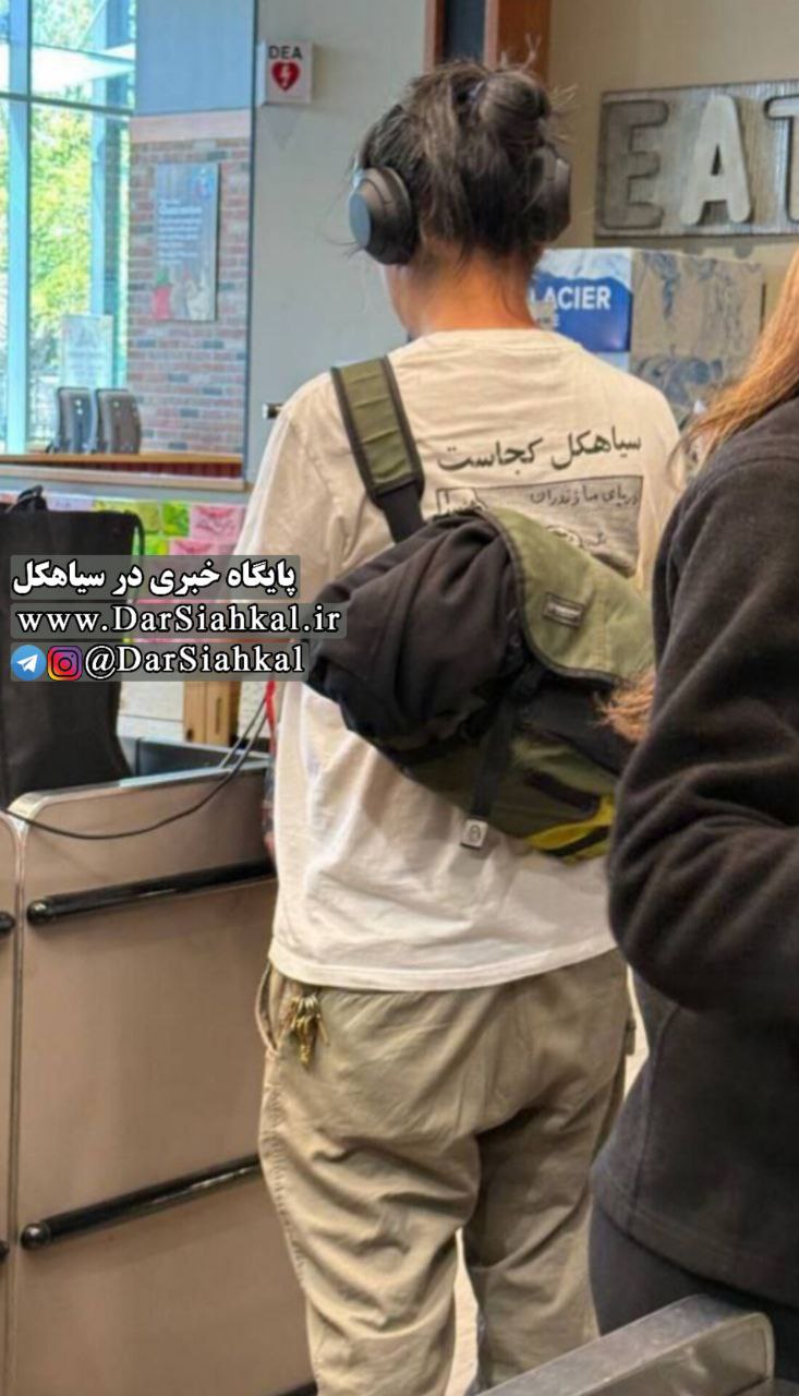 ایشون که چهرشون مشخص نیست ولی گفته شده سیاهکلی هستن؛ پیراهنی را که بر روی آن نوشته شده سیاهکل کجاست را به همراه نقشه سیاهکل در تورنتو کانادا پوشیده است.