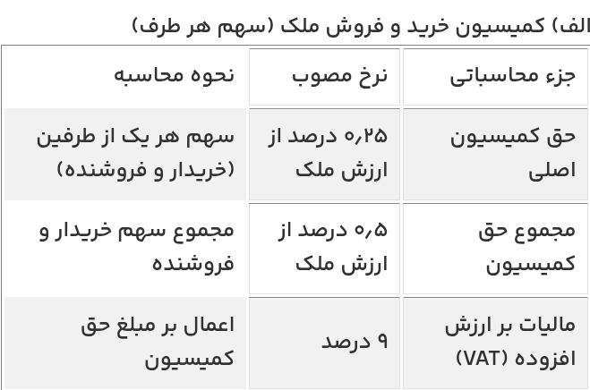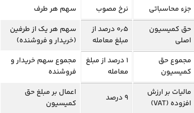 مالیات (VAT): ۹ درصد بر حق کمیسیون اضافه می‌شود.