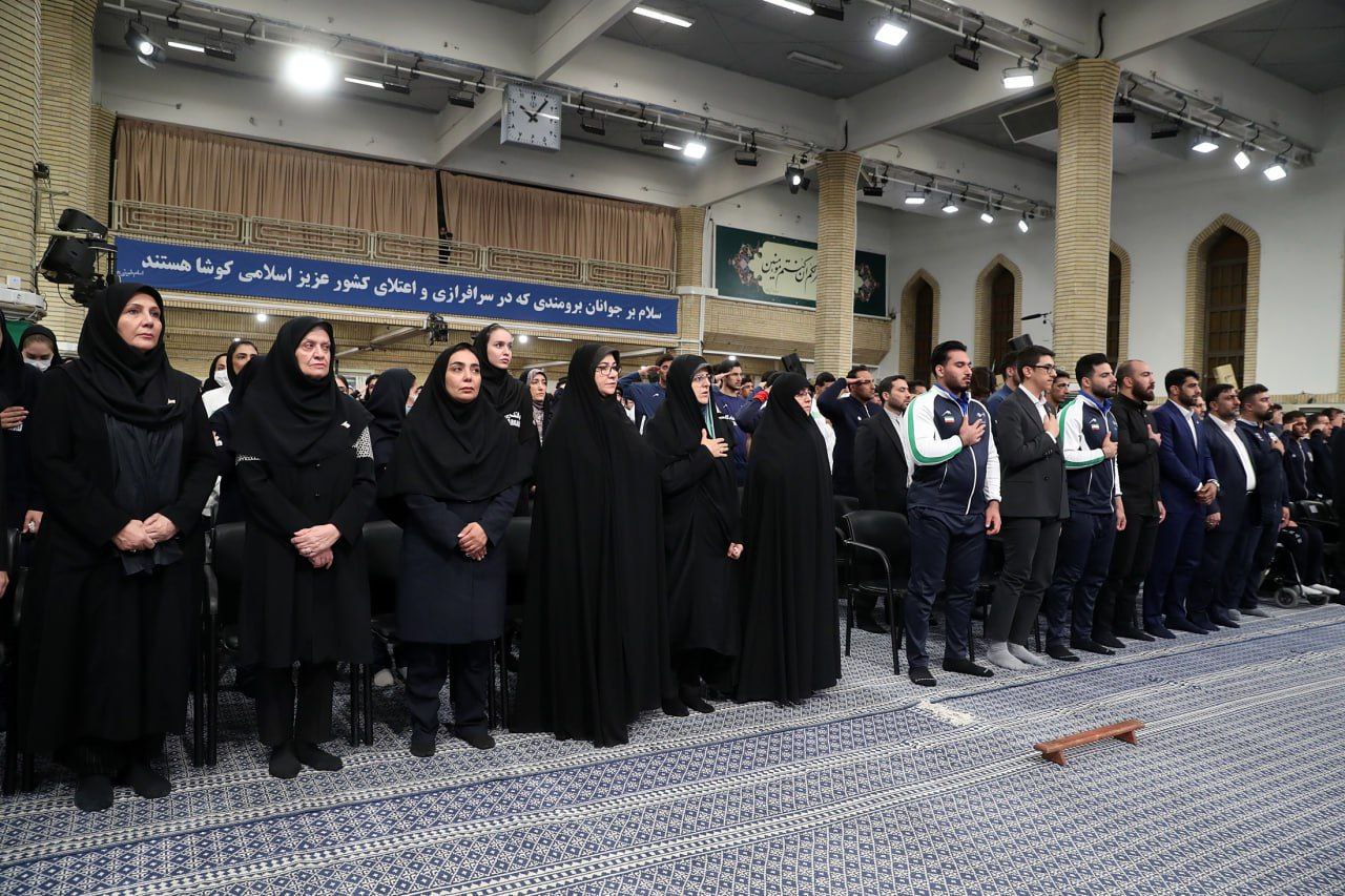 رهبر انقلاب «احترام به پرچم، سجده و دعای ورزشکاران پیروز» را نماد ملت ایران خواندند و افزودند: جوانان عزیز المپیادی نیز الان یک ستاره درخشانند اما ده سال بعد، به شرط ادامه تلاش، یک خورشید درخشان می‌شوند که وظیفه مسئولان در این زمینه مهم است.