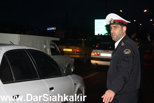 سرهنگ مهیار رستگار سرپرست پلیس راه گیلان ، به همراه همکاران خود درحال کنترل ترافیکatashsozi_mashin_sokht (15)