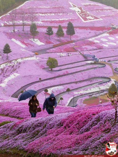 نزدیک به ۱ میلیون گل صورتی به نام شیبازاکورا در مساحت ۱۰۰ هزار متر مربعی در دامنه ی کوه مشرف به شهر تاکینو در ژاپن می روید.