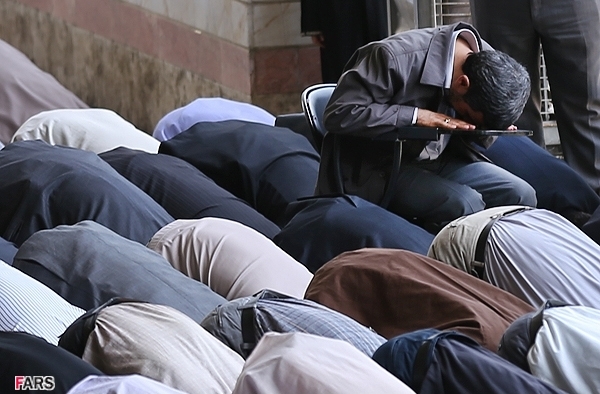 احمدی‌نژاد نماز امروز خود را نشسته خواند +عکس