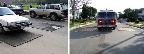 شكل 7 : نمونه‌اي از سرعت‌گير بالشتكي جهت تردد آسان خودروهاي امداد و نجات و همچنين حمل و نقل عمومي