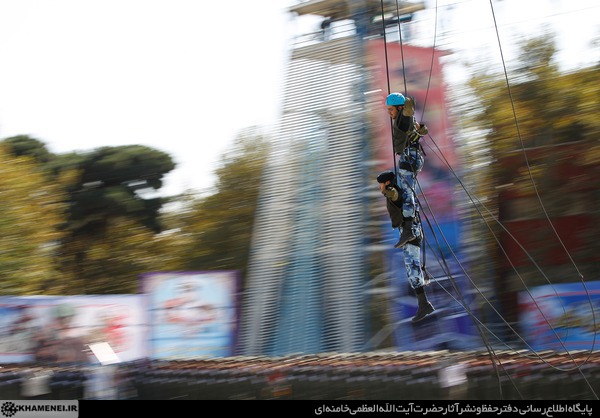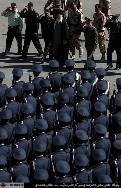 حضرت آیت الله خامنه‌ای در سخنانی در این مراسم، ورود به سِلک نیروهای مسلحِ شجاع و نام آور جمهوری اسلامی ایران را، برای جوانان تازه وارد، افتخار آمیز دانستند و با اشاره به لزوم تقویت آمادگی ها و استحکام دفاعی نیروهای مسلح در کنار تقویت ساخت درونی نظام اسلامی و وحدت ملی، تأکید کردند: ما از تحرک دیپلماسی دولت از جمله سفر نیویورک حمایت می‌کنیم زیرا به دولت خدمتگزار اعتماد داریم و به آن خوشبین هستیم اما برخی از آنچه که در سفر نیویورک پیش آمد بجا نبود، چون ما دولت امریکا را غیرقابل اعتماد، خودبرتربین، غیرمنطقی و عهد شکن می دانیم.