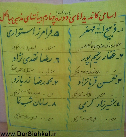 انتخابات هیئتهای مذهبیبقعه برفجانچهارمین دوره انتخابات هیئتهای مذهبیسیاهکلهیئت مدیره هیئت های مذهبیهیئت های مذهبی