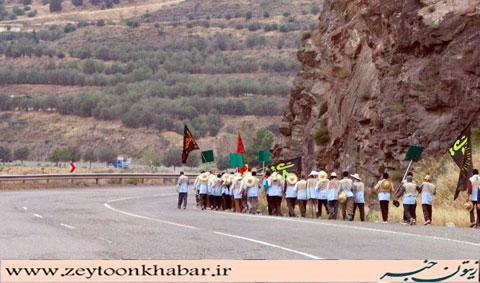 کاروان پیاده حرم امام خمینی(ره) در شهر شکوفه های زیتون+گزارش تصویری