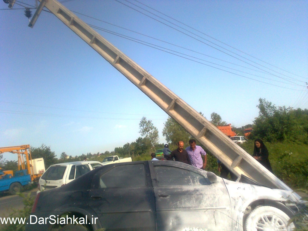 ماشینی که تیر برق را در محور سیاهکل به لاهیجان شکست+تصاویر