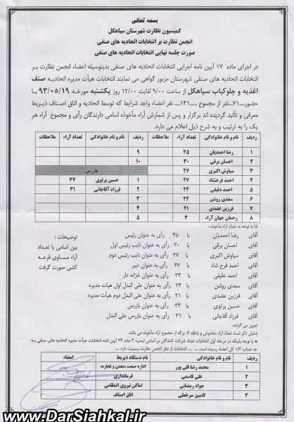به گزارش خبرنگار درسیاهکل ، انتخابات صنف اغذیه و چلوکباب سیاهکل با حضور 71 نفر از مجموع 141 نفر اعضاء واجد شرایط درانتخابات برگزار شد.