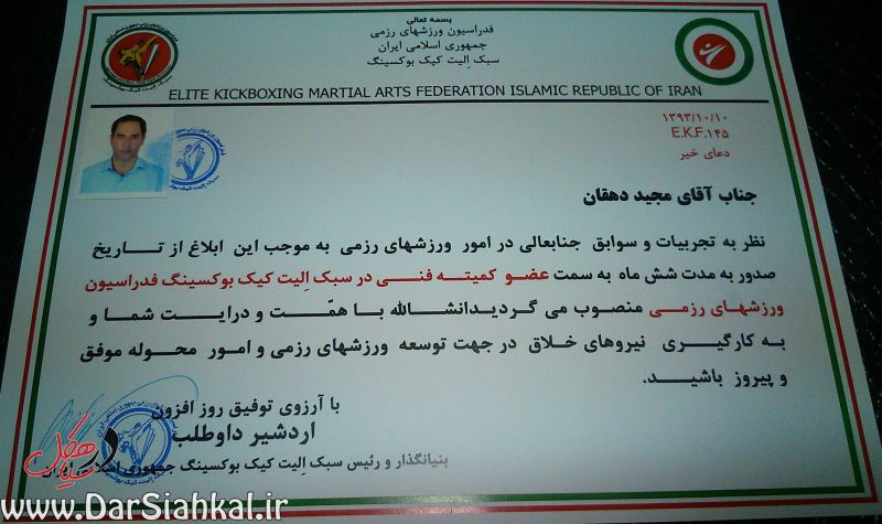 با عرض تبریک به آقای دهقان وجامعه ی ورزش های رزمی سیاهکل وآرزوی توفیق روز افزون ورزشکاران سلحشور شهرستان سیاهکل.