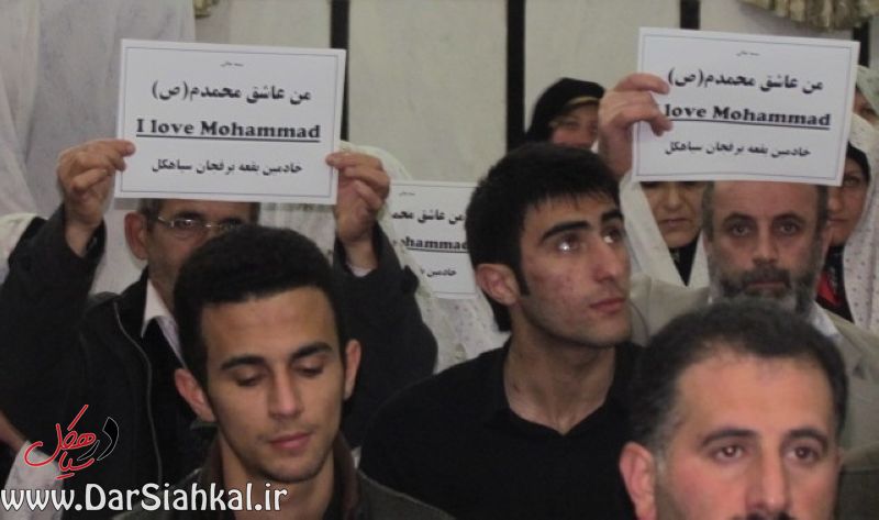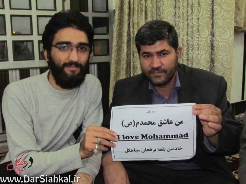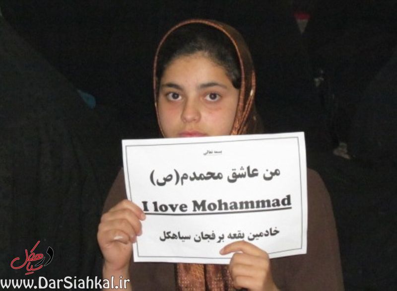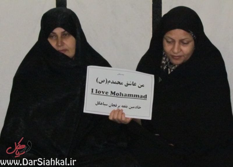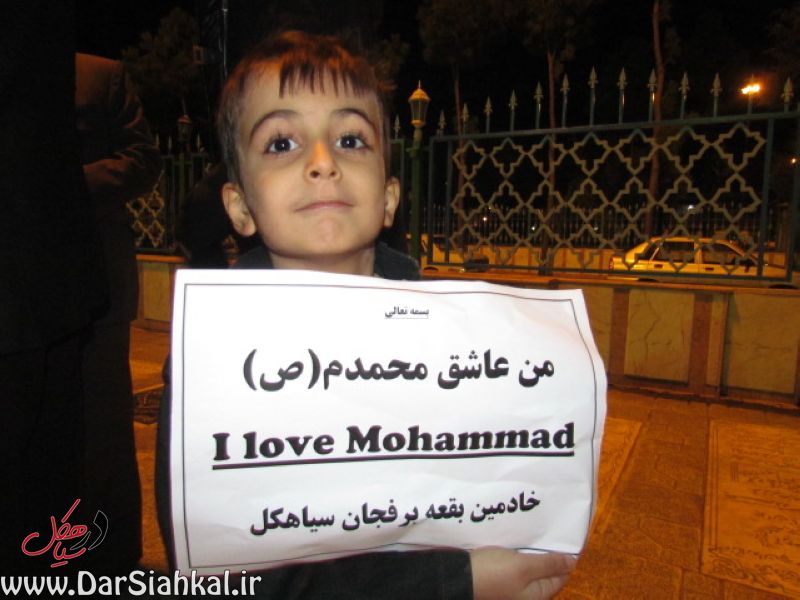 اللهم صل علی محمد وال محمد وعجل فرجهم. ای پیامبر خدا ما به کسانی که به شما اهانت کردند لعنت میفرستیم و خشم خود را ابراز میکنیم. لعنت خدا بر آنها باد. لبیک یا محمد.