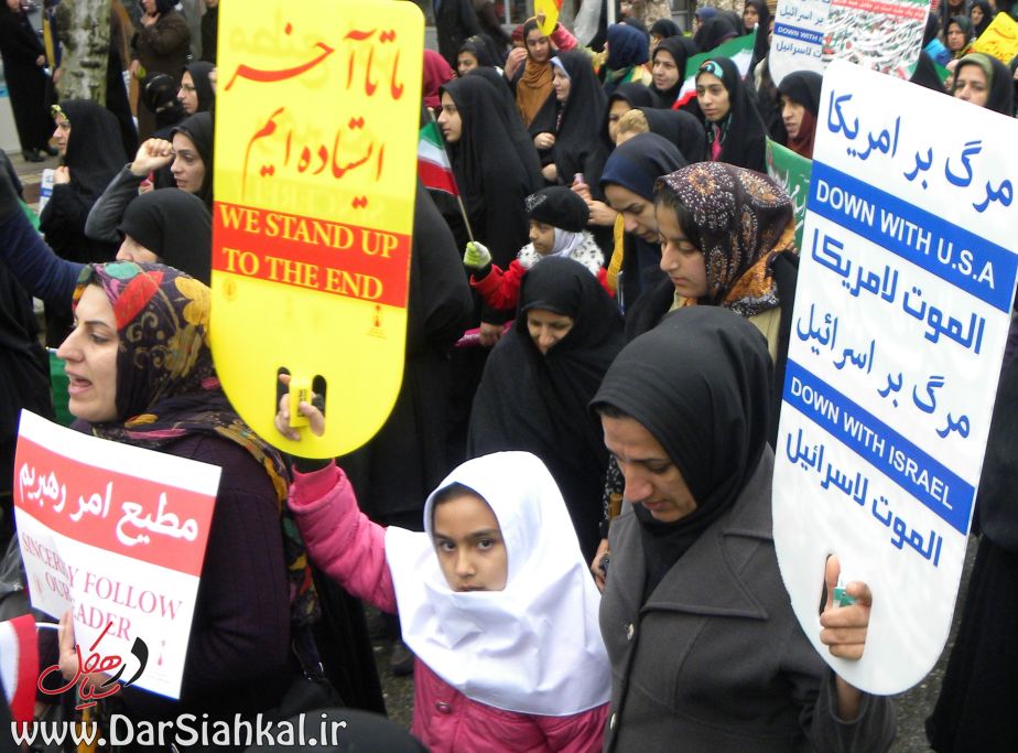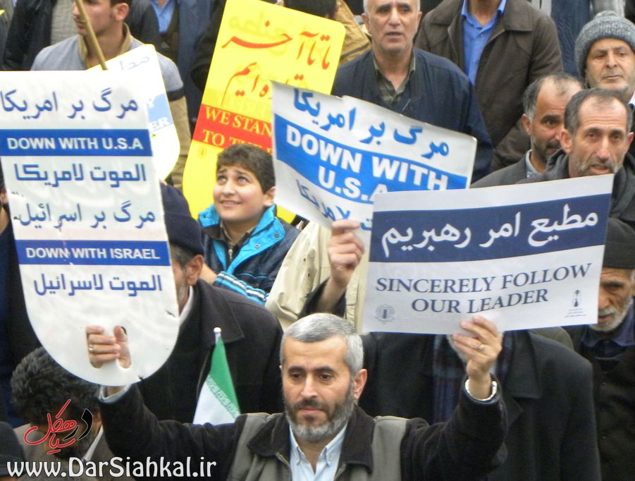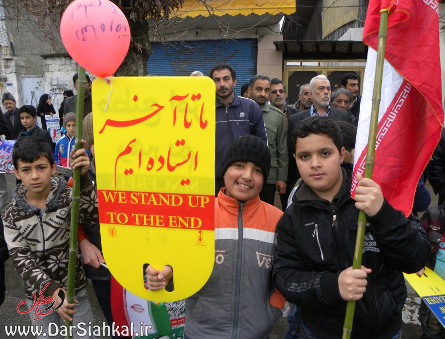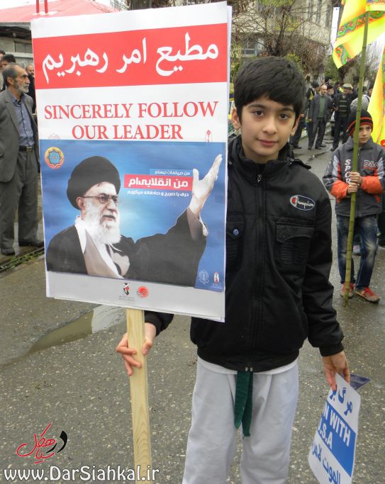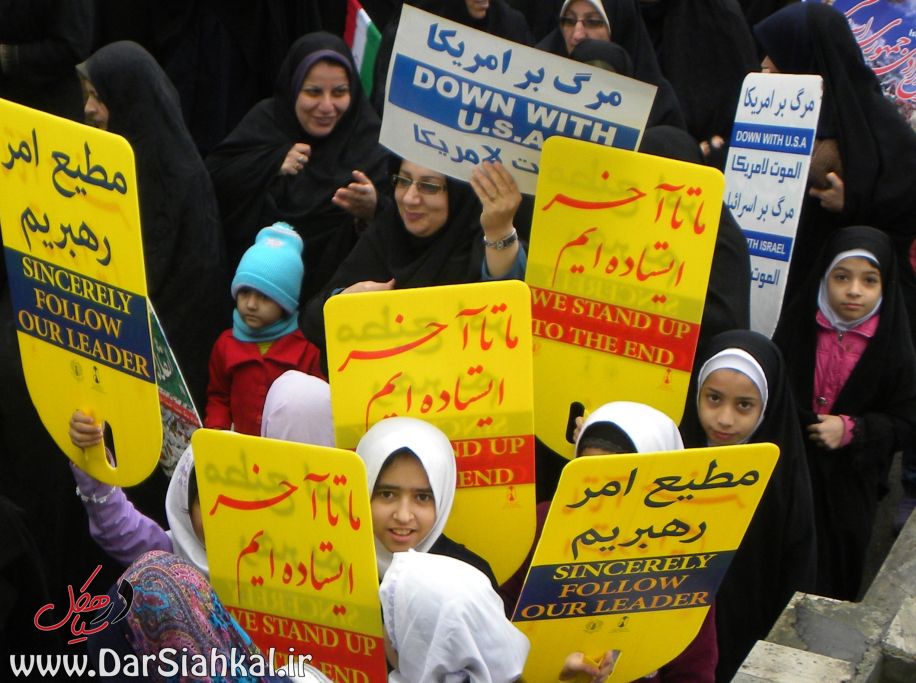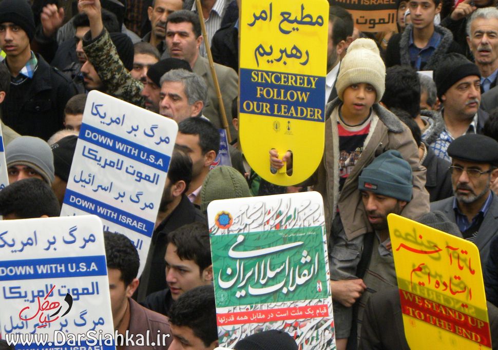 در راهپیمایی ۲۲ بهمن، پیر و جوان در کنار یکدیگر آمده بودند و با نوشته های در دست خود اعلام می کردند که گوش به فرامین رهبر خود هستند و در برابر زیاده خواهی های مستکبران کوتاه نخواهند آمد.