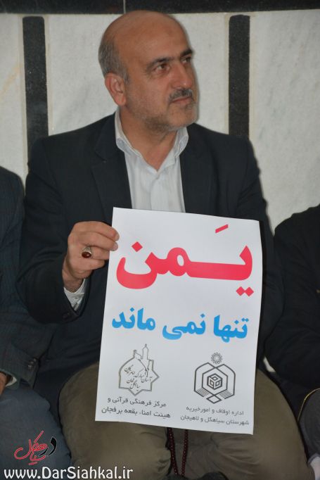 همچنین شرکت کنندگان با داشتن نوشته هایی همدردی و حمایت خود از مردم مظلوم یمن را اعلام کردند.