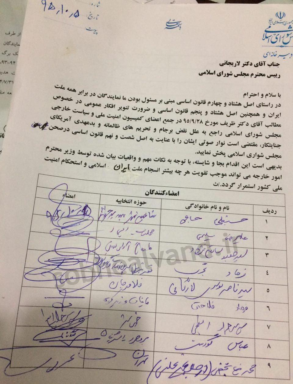 بنطرم از اقایان امضا کننده نامه واز کسانی که موضوع تحریم را هنوز نفهمیدند باید متاسف بود بخاطر اینکه تا دیروز با اقای همصدا بودند انقدر تحریم کنید تا تحریم دانتان پاره بشه یا اینها کاغذ پاره هستند وتحریم مملکت مارا فلج نمیکه مردم مارا گور خواب نمیکنه بیکاری ایجاد نمیکنه …الان که مردان عاقلی با بهره گیری همه استعدادها حتی رهنمودهای مقام رهبری اندک اسایشی قرار به مملکت برگردانند ایچنین افراط گرایی میکنند وهوس ساختن بابک زنجانی میکنند تا سود دیگری گیرشون اید و دوباره یه بابک زنجانی دیگری بسازند