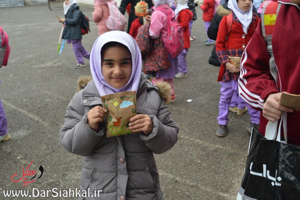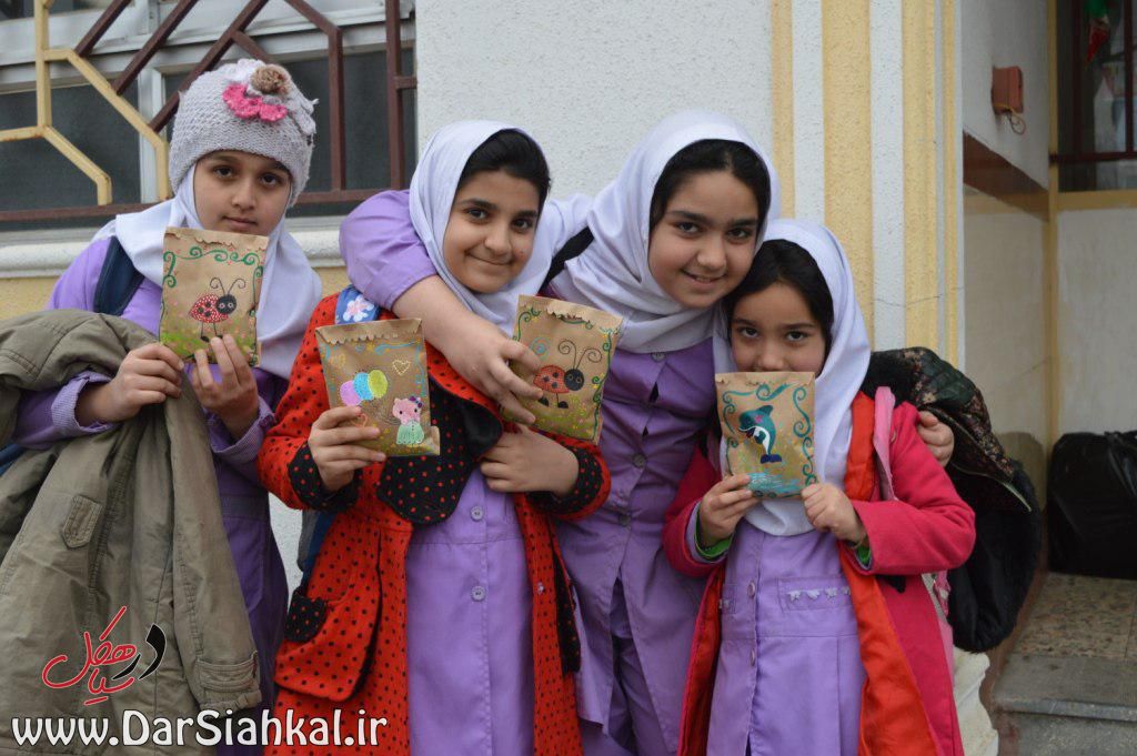 در این برنامه که با حضور تعدادی از اعضای موسسه دوستداران سیاهکل٬ مدیر و پرسنل مدرسه و تعدادی از اولیا دانش آموزان برگزار شد، تعداد ۱۲۰ عدد پاکت حاوی دانه های گندم که توسط کارگروه حمایت از حیوانات موسسه دوستداران سیاهکل تهیه شده بود در میان تمام دانش آموزان مدرسه توزیع گردید.