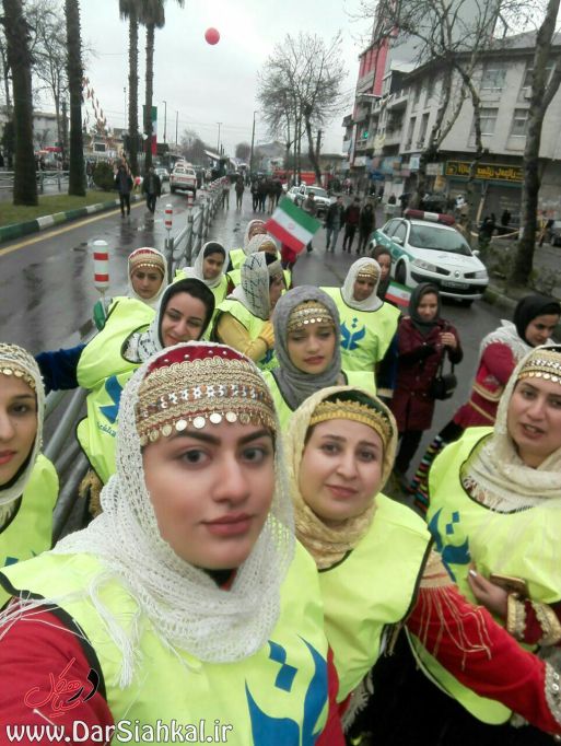 اعضای مؤسسه گردشگری تی تی دیلم سیاهکل با پوشیدن لباس های محلی در راهپیمایی 22 بهمن رشت شرکت کردند.