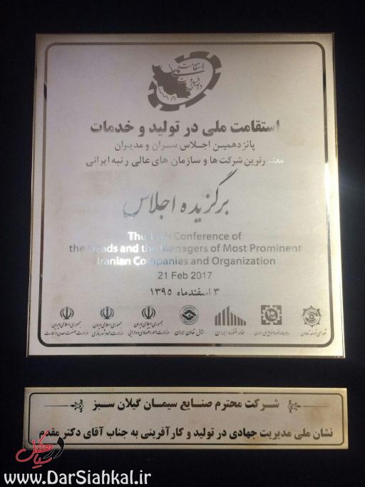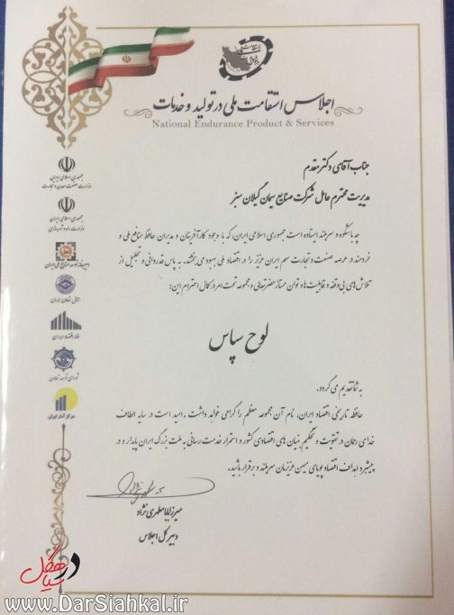 کسب عنوان کارفرمای نمونه گیلان توسط مدیرعامل شرکت نام آور به شیر سیاهکل