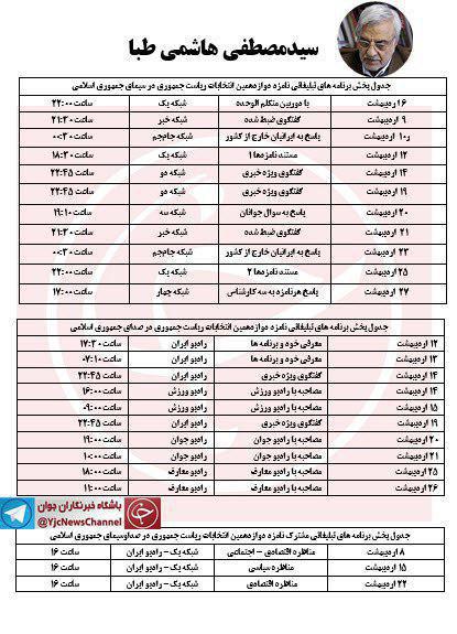 جدول زمان بندی برنامه کاندیداهای ریاست جمهوری در صداوسیما