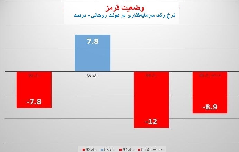 این در حالی است که که کل بودجه عمرانی دولت یازدهم در این چهارسال به ۱۰۰هزار میلیارد تومان هم نرسید تا رکود عمیقی را در این سالها شاهد باشیم. نرخ رشد سرمایه گذاری هم منفی بوده است.