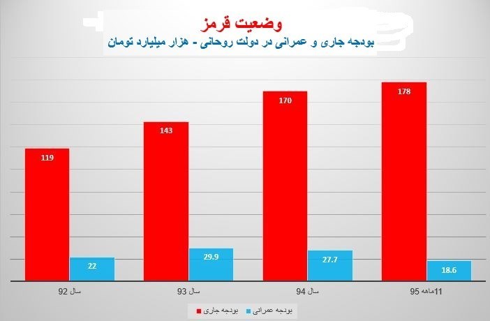 همچنین در دولت یازدهم نرخ رشد هزینه‌های جاری بیش از ۲ برابر شده و به ۱۳۳ درصد رسیده است، این در حالی است که نرخ رشد هزینه‌های جاری در دولت نهم ۴۷٫۶ درصد بوده و در دولت دهم به ۵۲٫۷ درصد رسیده است.