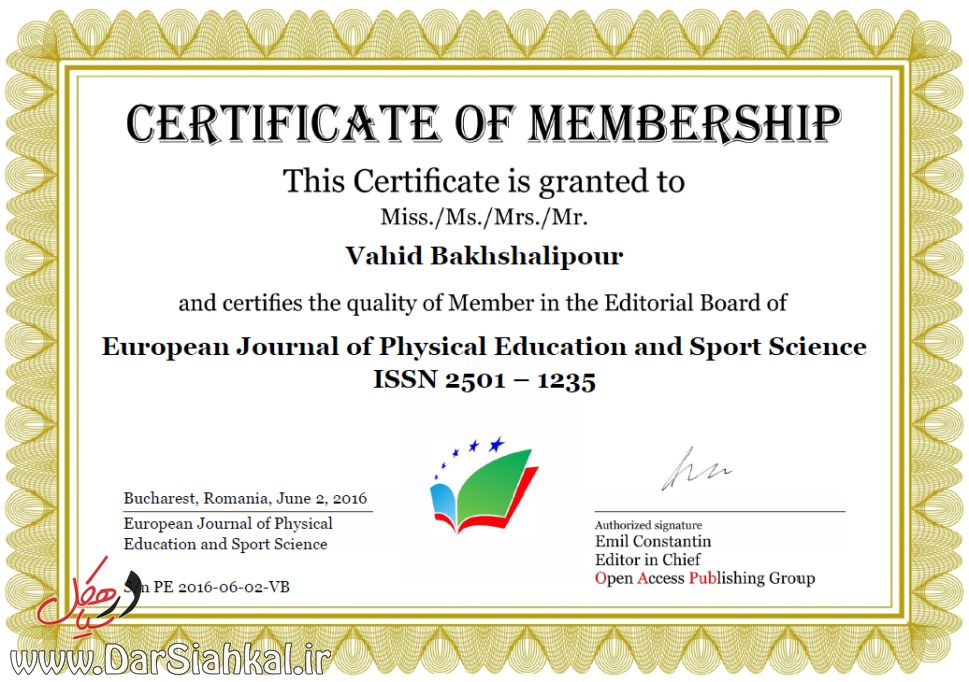 عضویت پژوهشگر جوان سیاهکلی در نشریه علمی-تخصصی کشور رومانی