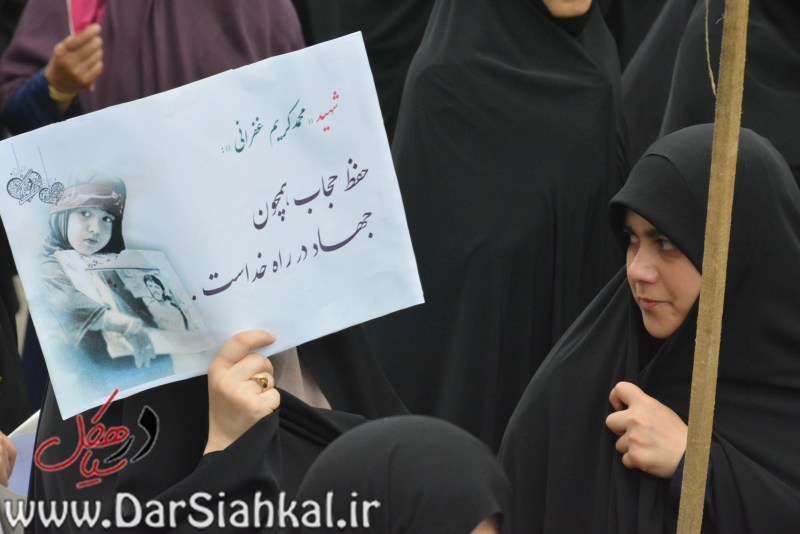 بانوان و دختران سیاهکلی با سر دادن شعارهای لبیک یا زهرا(س) و لبیک یا زینب(س) و سلامت جامعه حق جوانان ماست، بر لزوم توجه به توطئه دشمنان قسم خورده نظام در مقابله با فرهنگ عفاف و حجاب تأکید کردند.