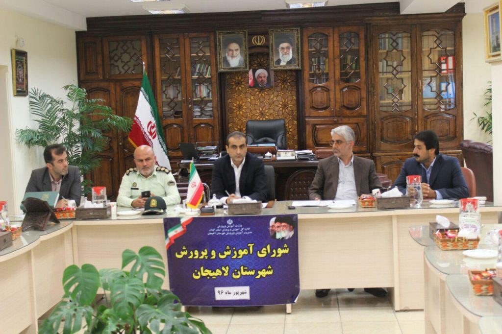 پروژه مهر ۹۶ ، اردوهای راهیان نور ، بررسی شکایت اهالی یکی از خیابان های لاهیجان به دلیل تاسیس یک مدرسه غیردولتی ، تعیین نرخ کلاسهای فوق برنامه مدارس تیزهوشان ، اقدامات ترافیکی برای شروع سال تحصیلی و … مواردی بود که در این جلسه به آنها پرداخته شد.
