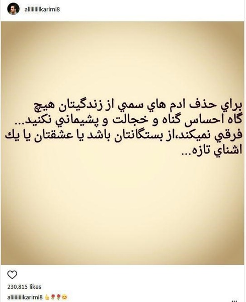 علی کریمی بازیکن اسبق پرسپولیس و تراکتورسازی پست جدیدی را در اینستاگرام خود منتشر کرد.