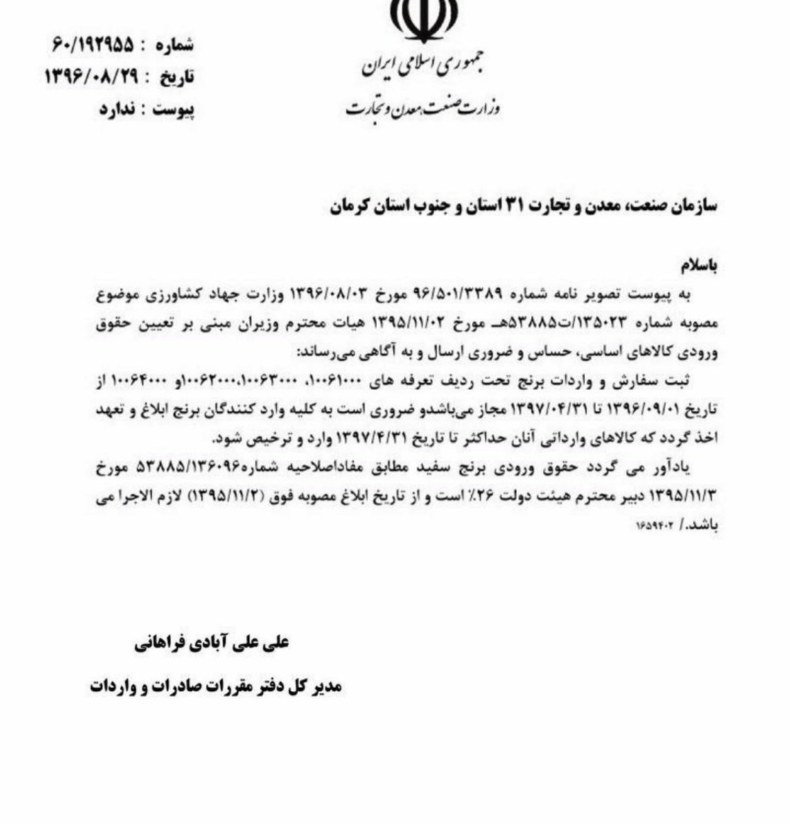در ادامه این بخشنامه آمده است، کلیه واردکنندگان برنج باید تعهدات لازم را برای واردات و ترخیص برنج وارداتی تا پایان تیرماه سال ۹۷ ارائه کنند.