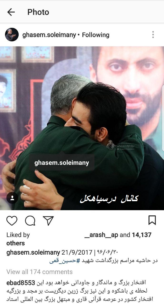 سردار سلیمانی به تازگی عکس لحظه در آغوش گرفتن این قاری سیاهکلی را در صفحه اینستگرامش منتشر کرد.