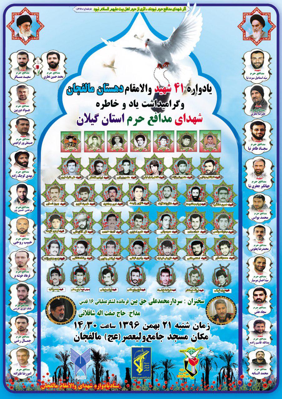 یادواره ۴۱ ‌شهید والامقام دهستان مالفجان و گرامیداشت یاد و خاطره شهدای مدافع حرم استان گیلان برگزار می‌شود.
