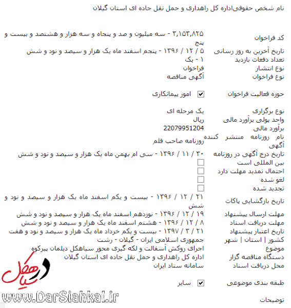 آگهی مناقصه اجرای روکش آسفالت و لکه گیری محور سیاهکل-دیلمان-پیرکوه